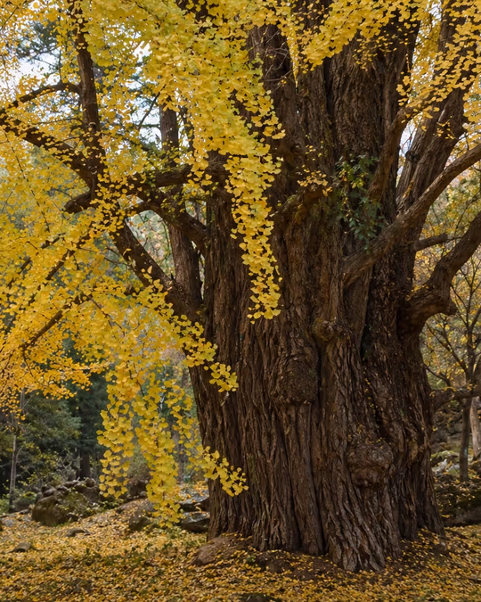 The Ginkgo Biloba Tree is a venerable species that has survived the test of a vast geological time span. It’s also known as the Maidenhair tree. It originates in China.