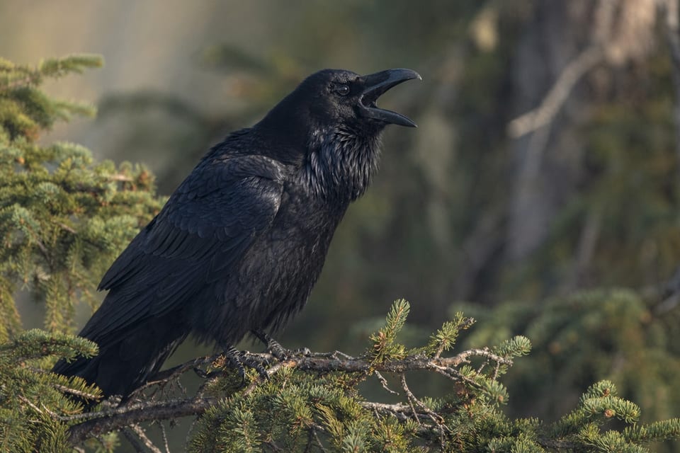 Crows are very common and can be found almost anywhere. You’ll find them in the woods and forests, and fields, most commonly. However, they love being where people are because they know they can get easy food. Because of this, you’ll often find them along the roads, in towns, parking lots, yards, and agricultural fields.