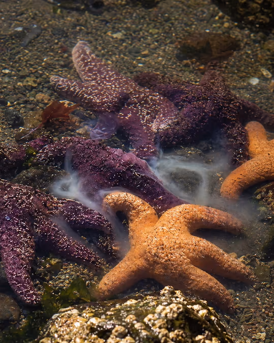 Juvenile starfish are vulnerable. They spend most of their time hiding under rocks and inside crevices. As they get larger, they become bolder, coming out to explore for food.